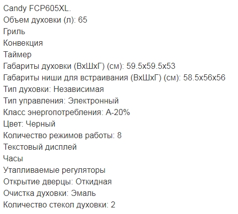 Электрический духовой шкаф Candy (Канди) FCP 605 XL