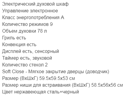 Объём духовки |