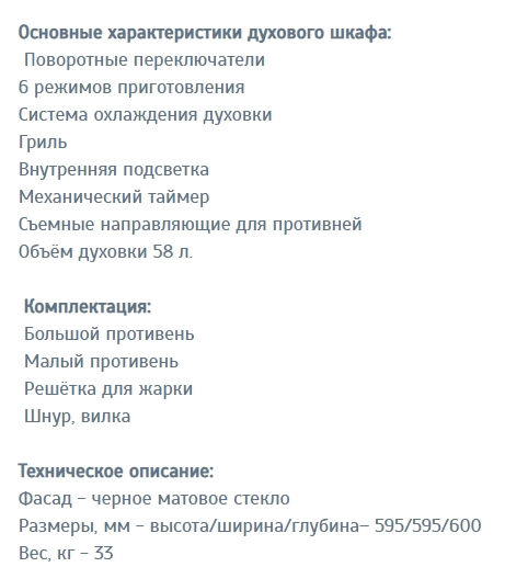 Объём духовки |