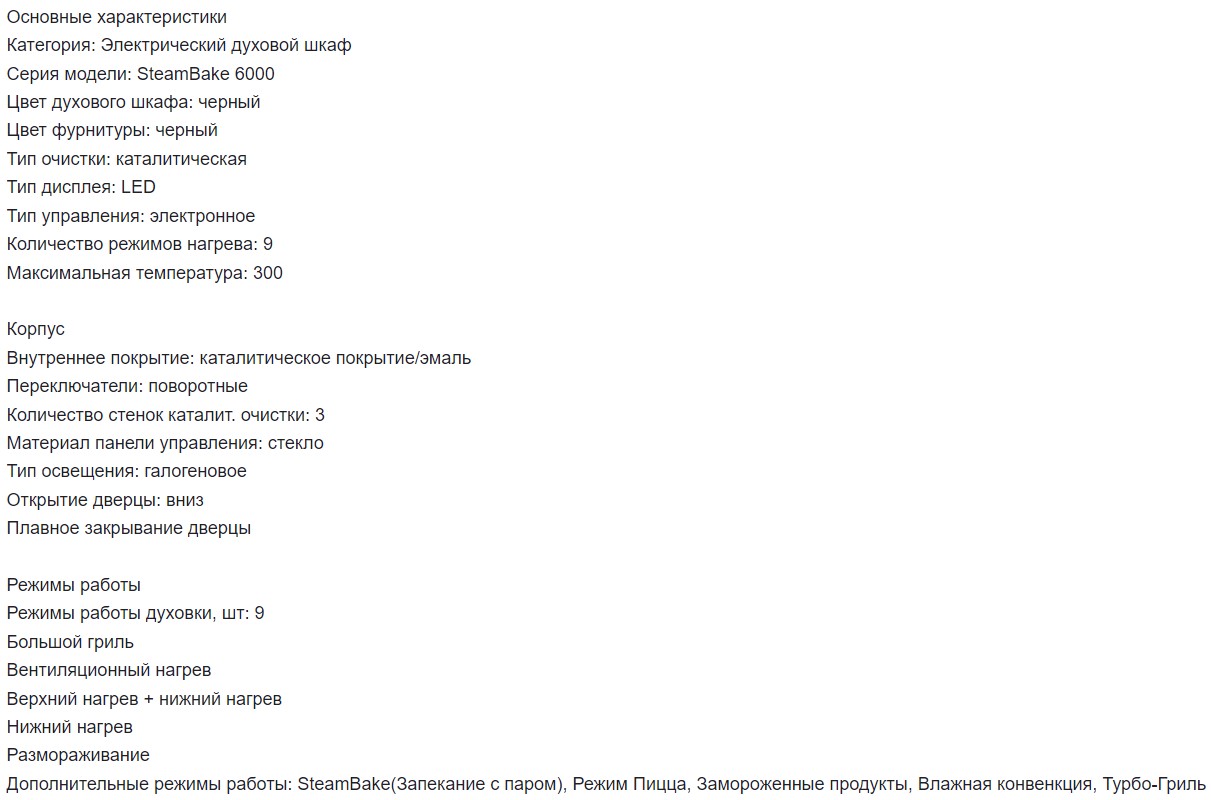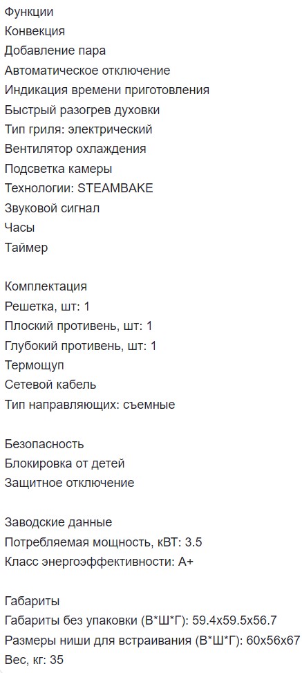Объём духовки |