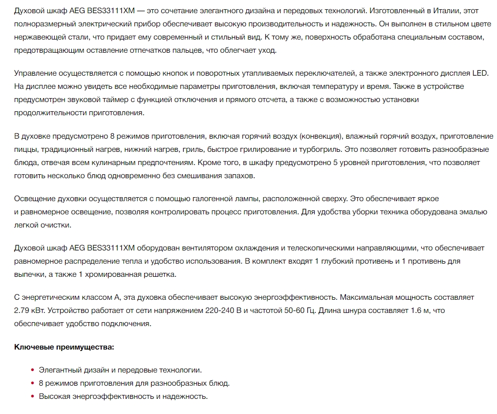 Электрический духовой шкаф AEG (АЕГ) BES33111XM