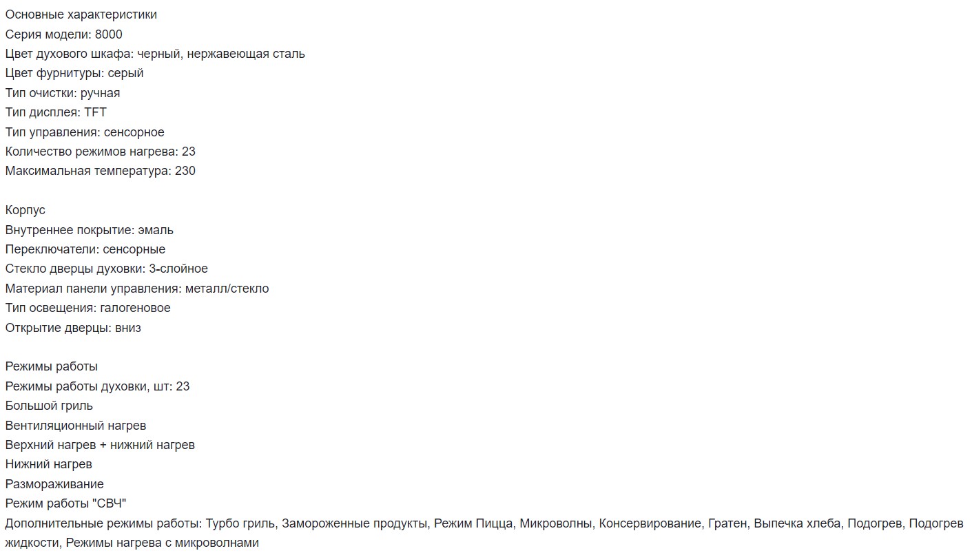 Объём духовки |