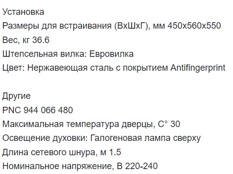 Объём духовки |