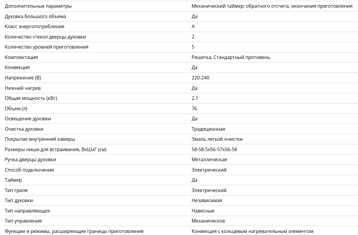 Объём духовки |