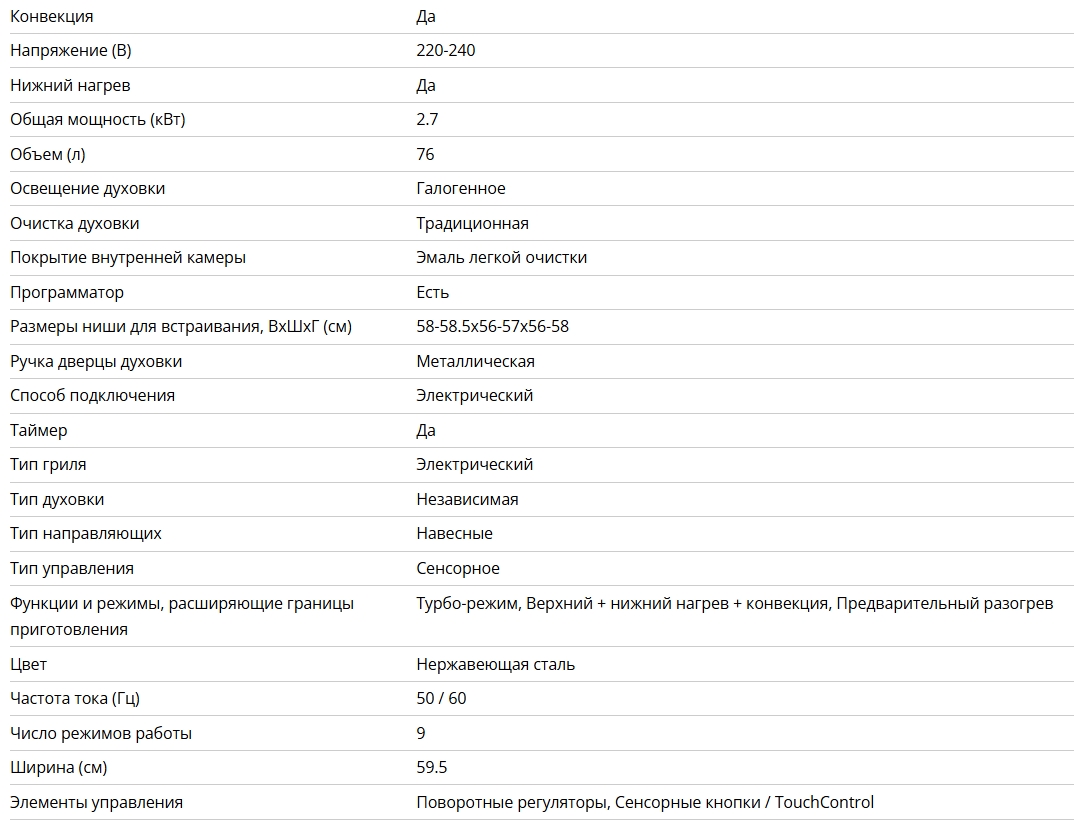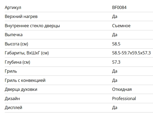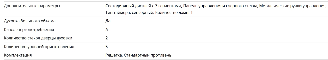 Объём духовки |