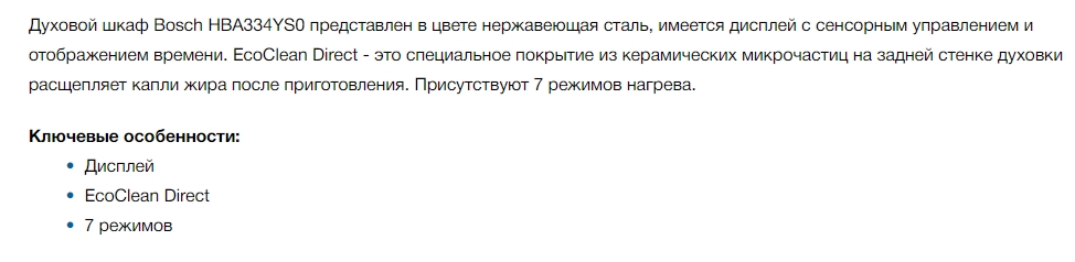 Электрический духовой шкаф Bosch (Бош) HBA334YS0
