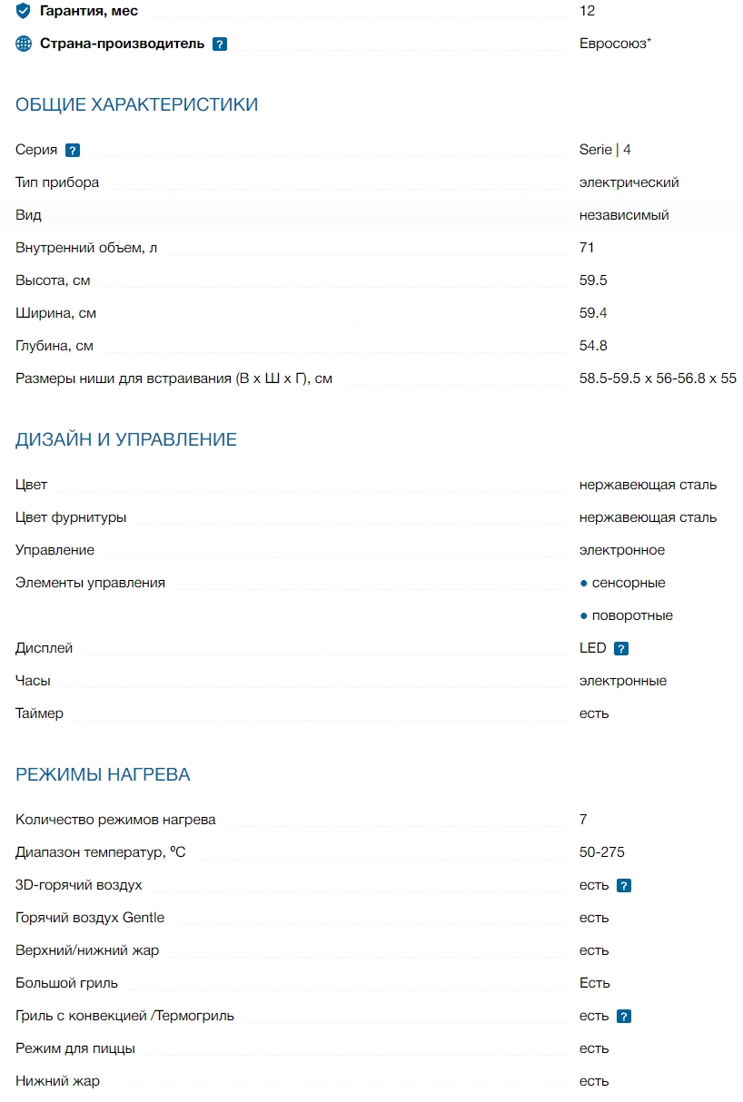 Объём духовки |