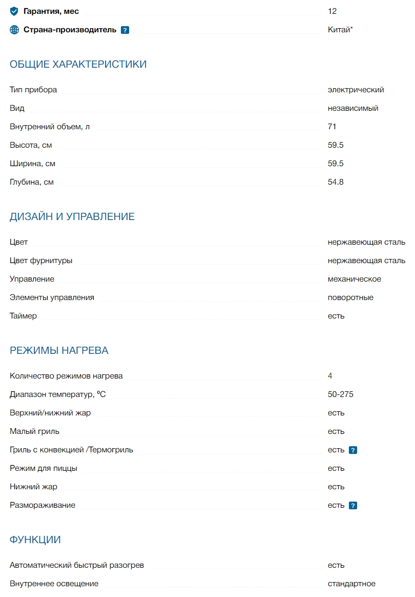 Объём духовки |