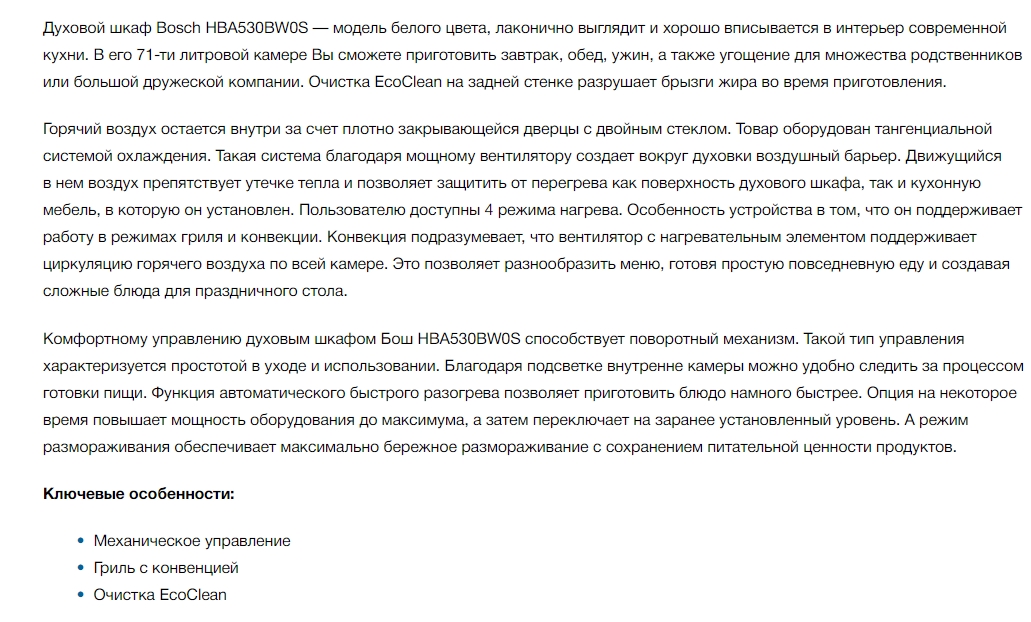 Электрический духовой шкаф Bosch (Бош) HBA530BW0S