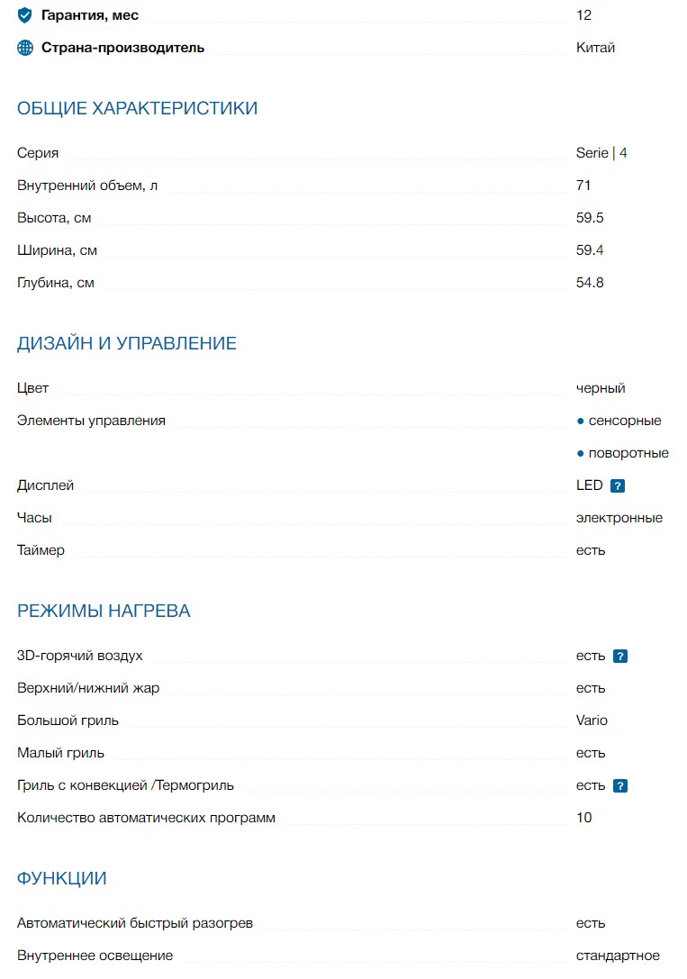 Объём духовки |