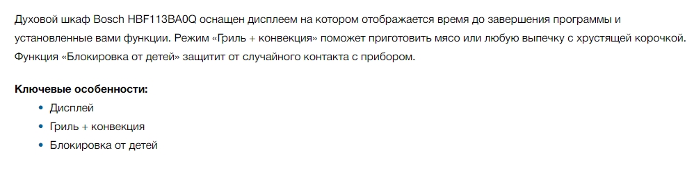Электрический духовой шкаф Bosch (Бош) HBF113BA0Q