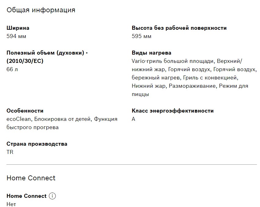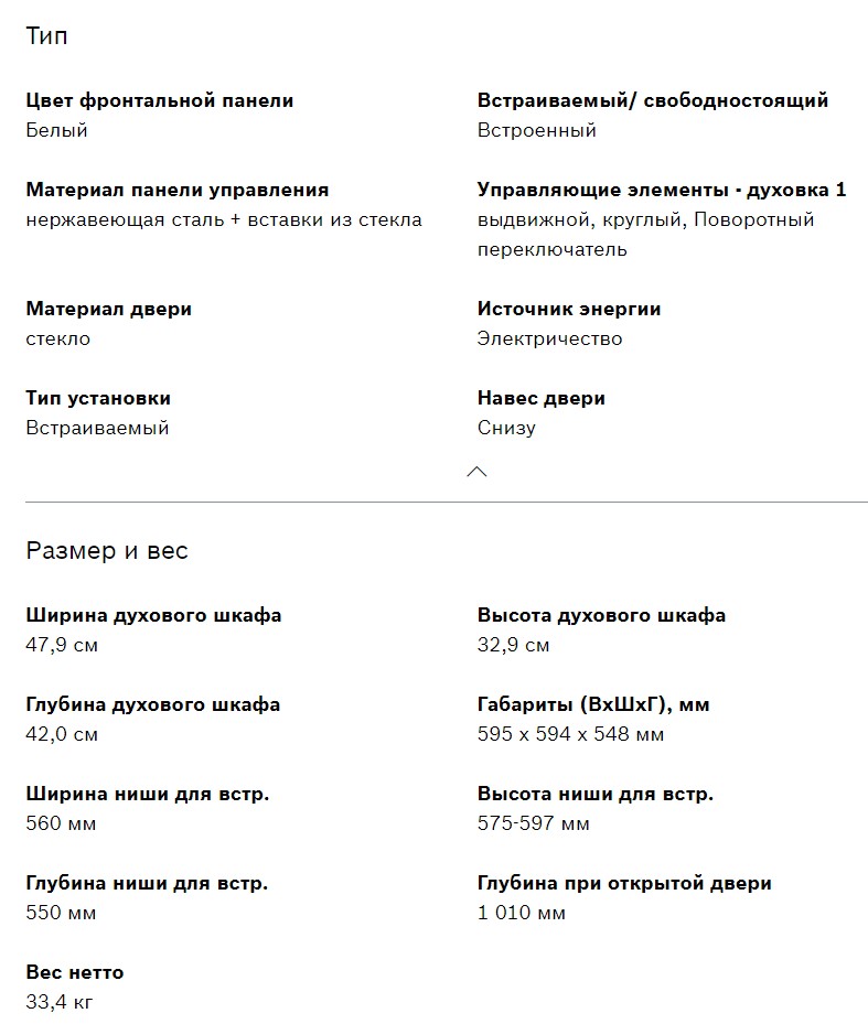 Объём духовки |