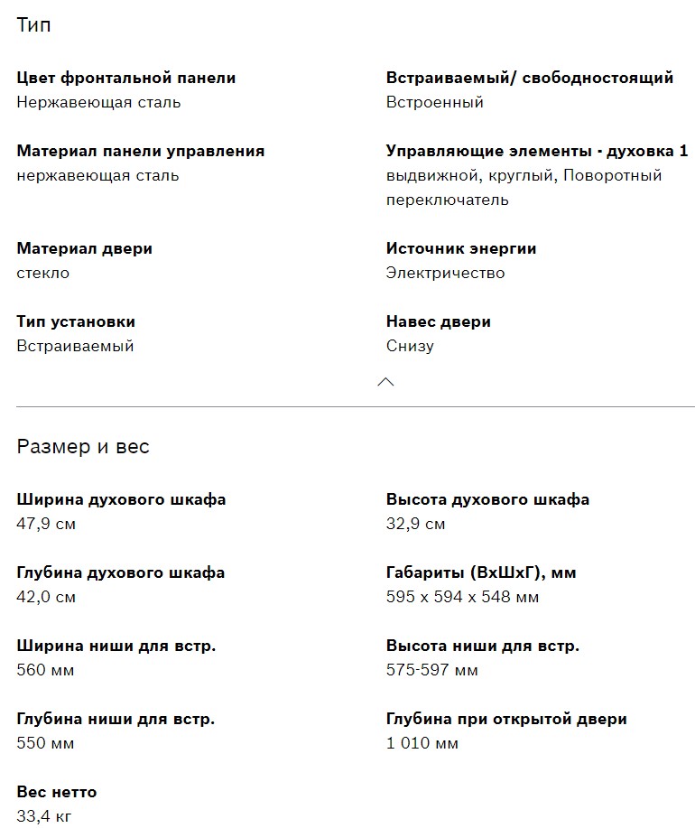 Объём духовки |