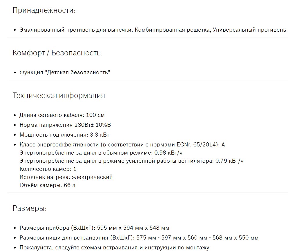 Объём духовки |