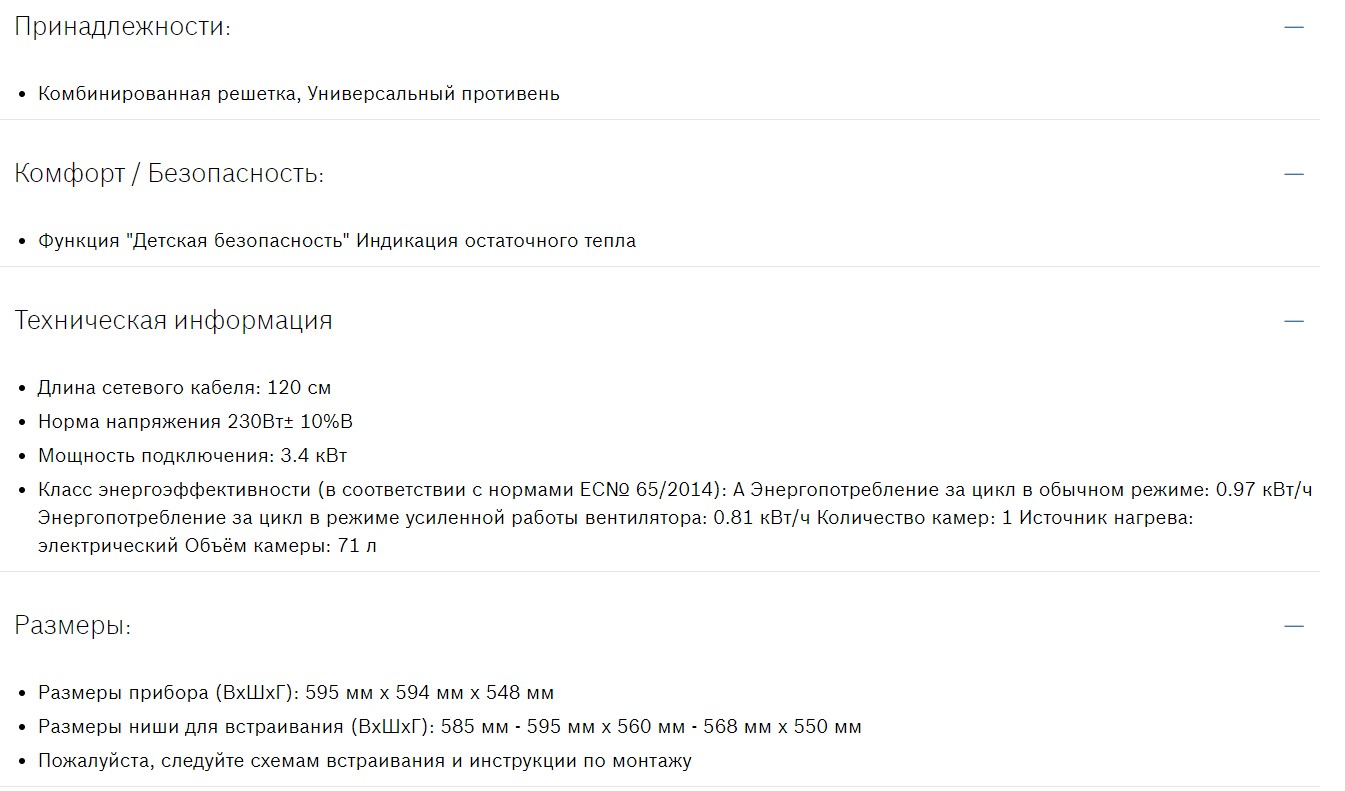 Объём духовки |