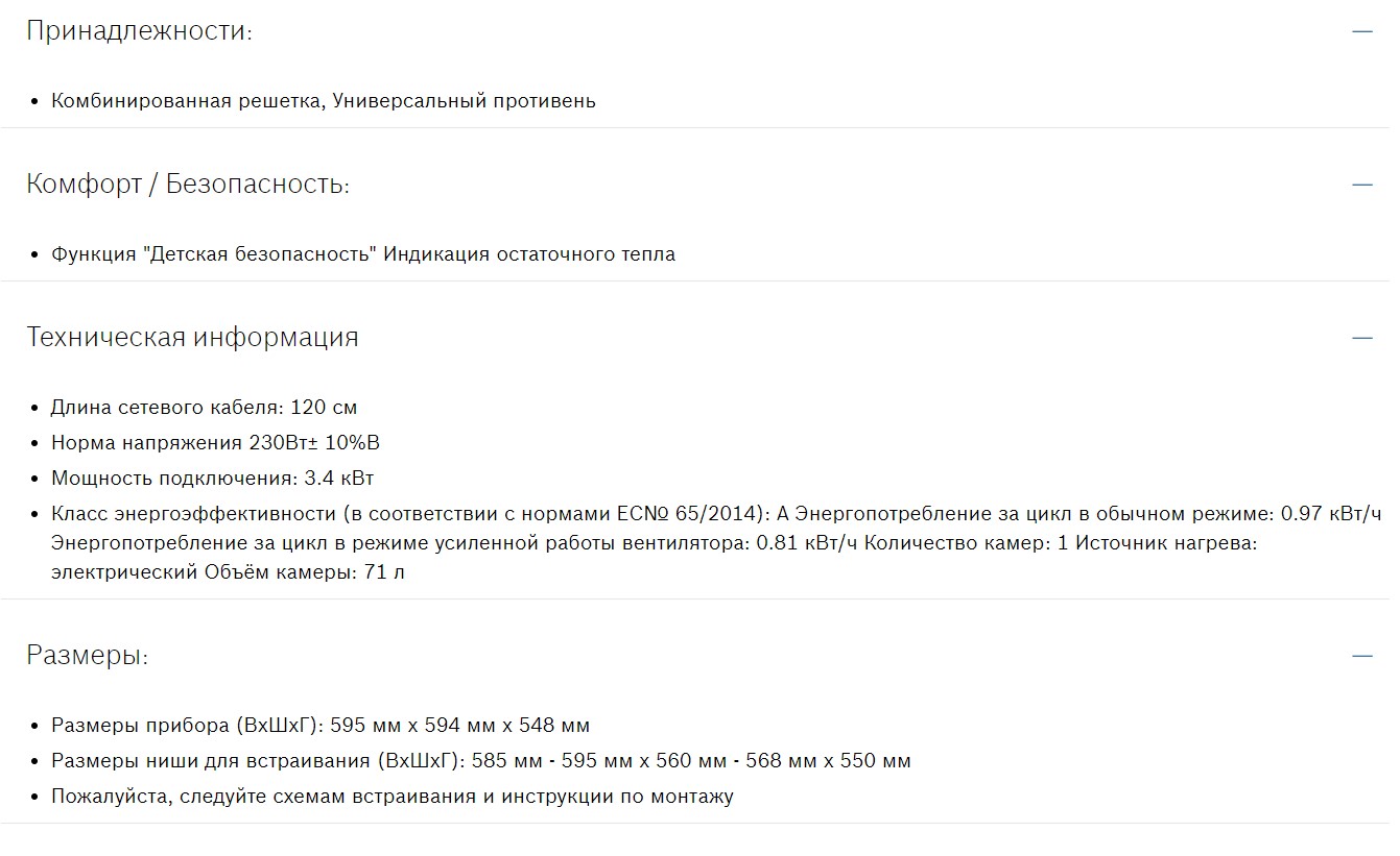 Объём духовки |
