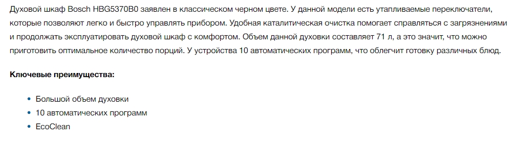 Объём духовки |