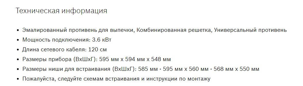 Объём духовки |