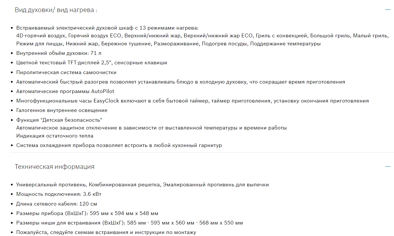 Объём духовки |