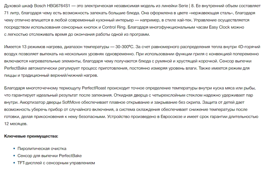 Электрический духовой шкаф Bosch (Бош) HBG6764S1