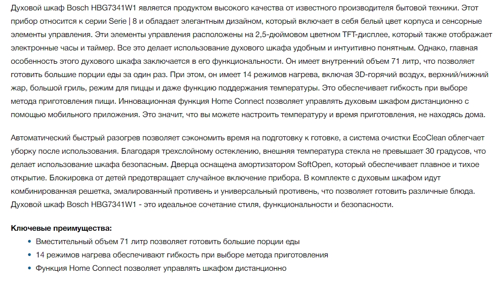 Электрический духовой шкаф Bosch (Бош) HBG7341W1