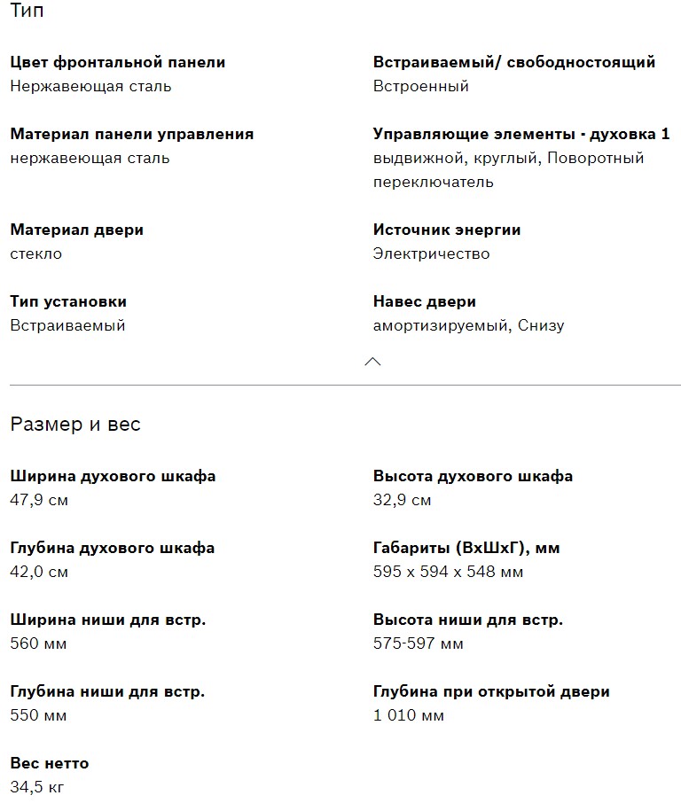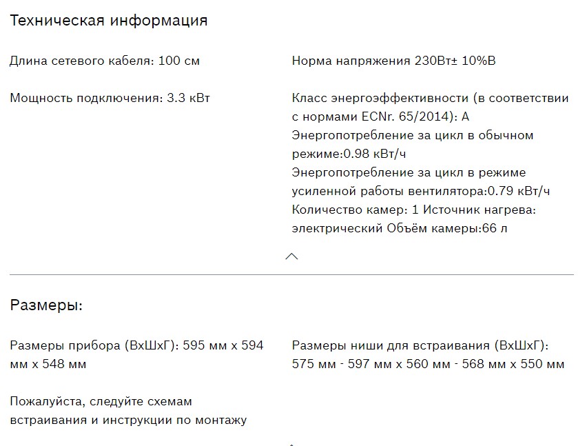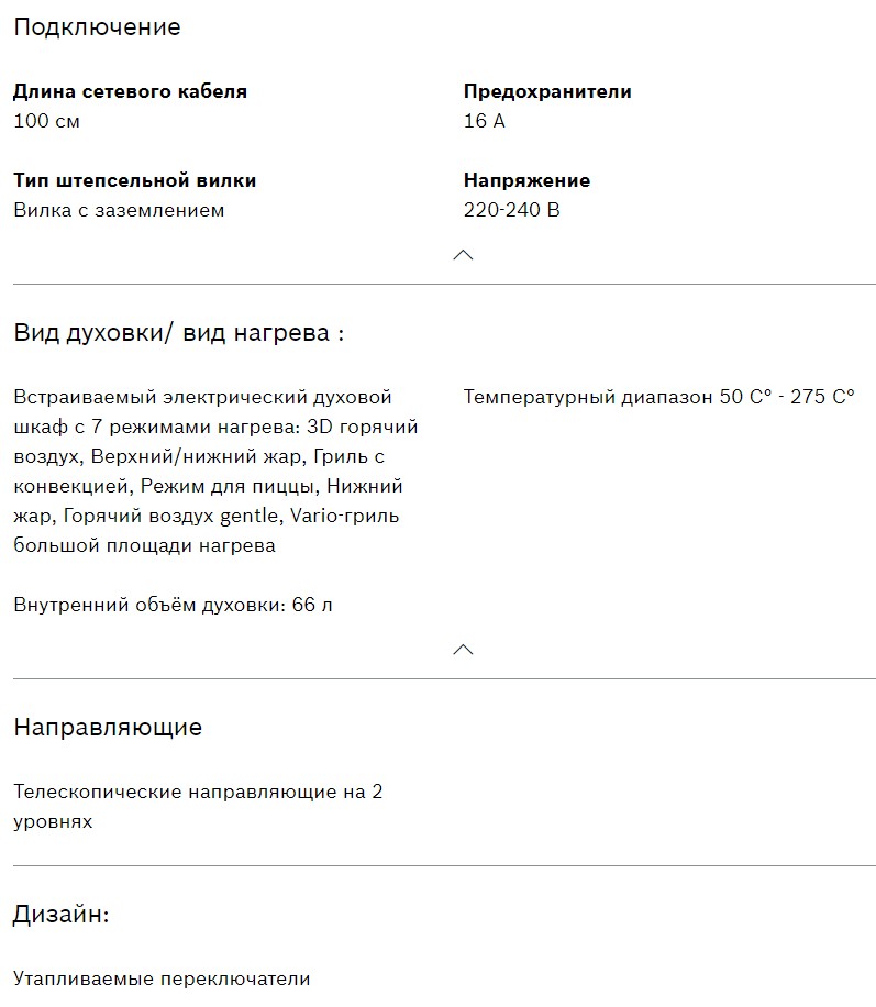 Объём духовки |