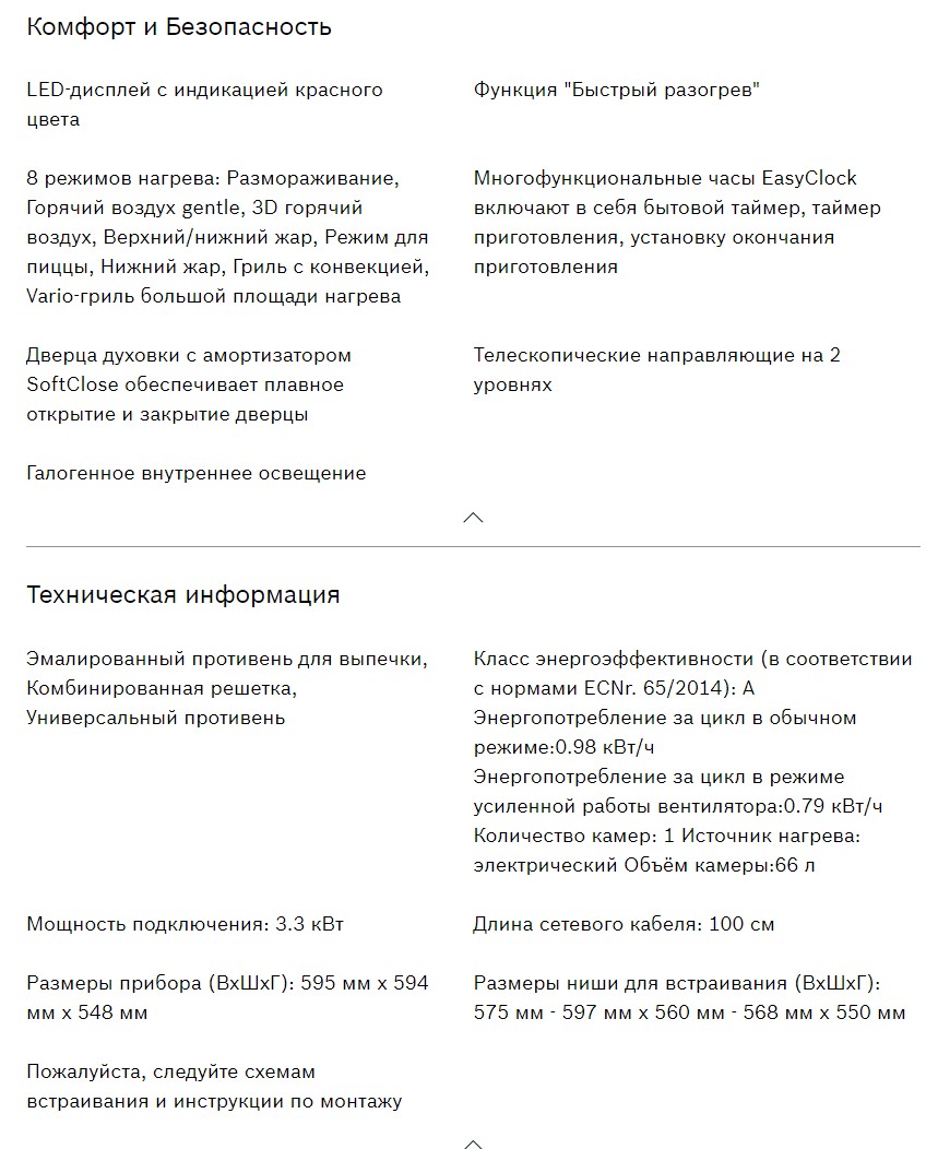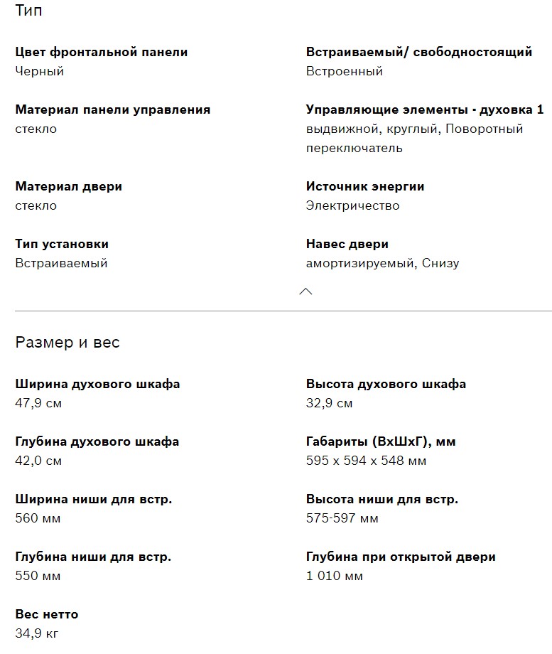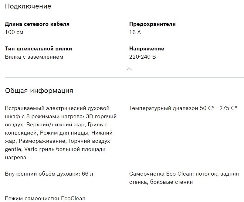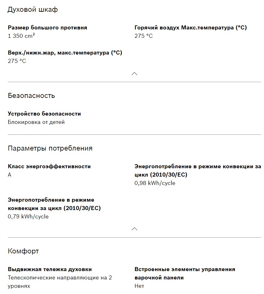 Объём духовки |