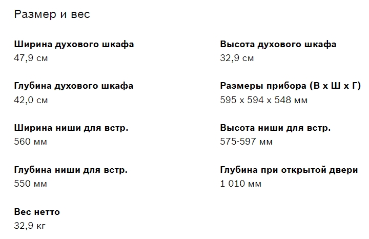 Объём духовки |
