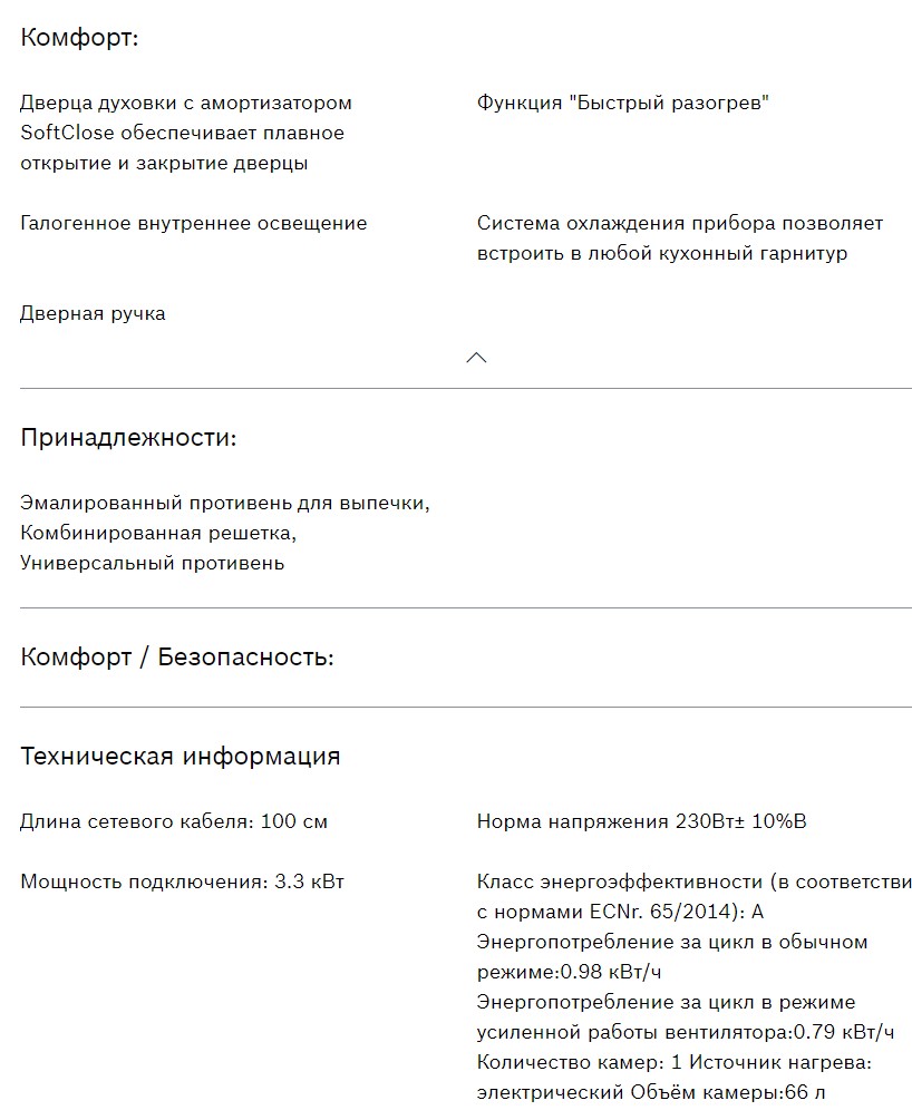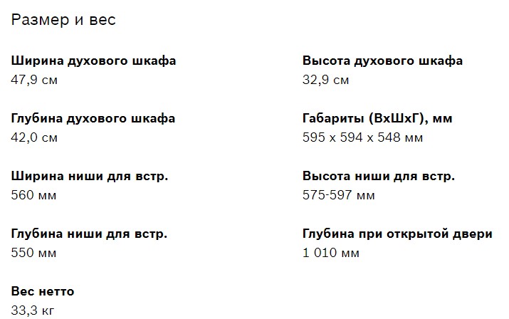 Объём духовки |