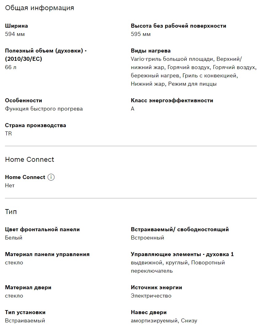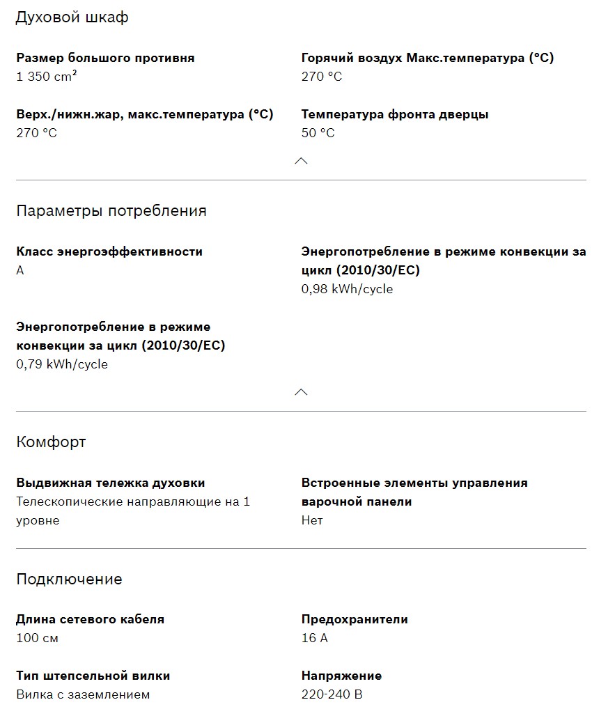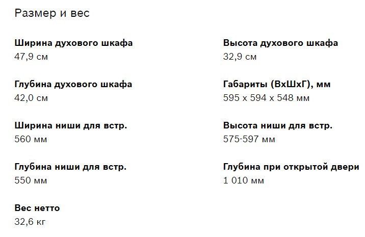 Объём духовки |