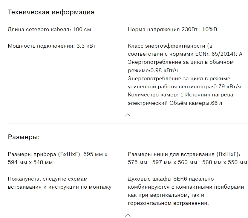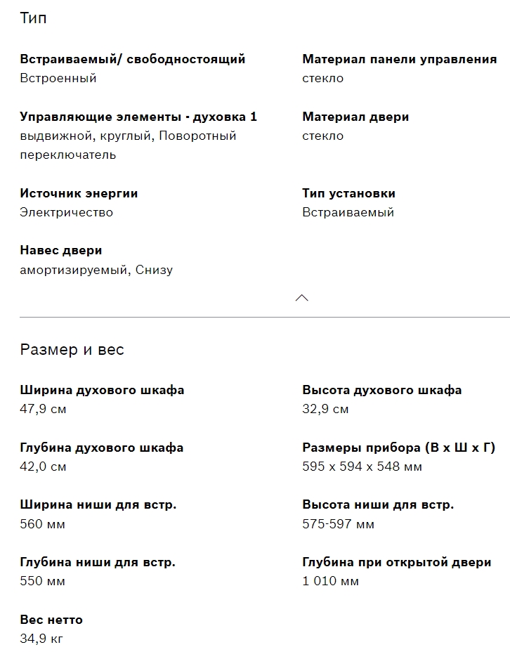 Объём духовки |