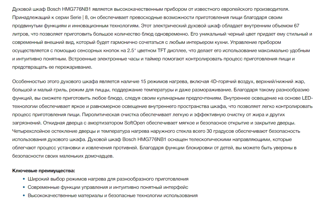 Электрический духовой шкаф Bosch (Бош) HMG776NB1