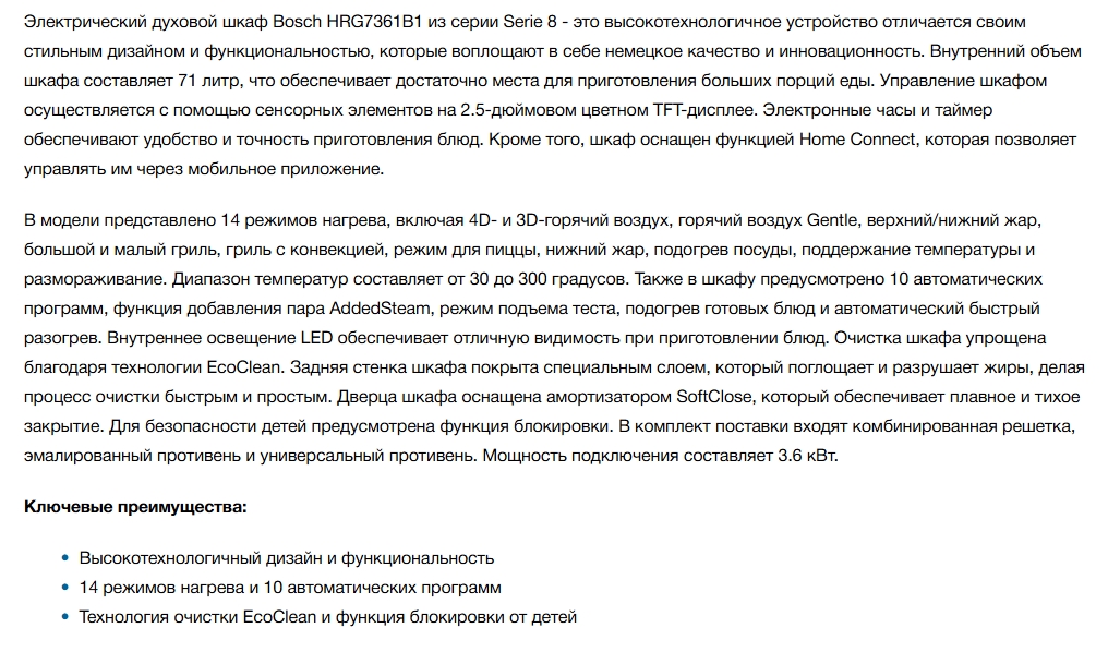 Электрический духовой шкаф Bosch (Бош) HRG7361B1