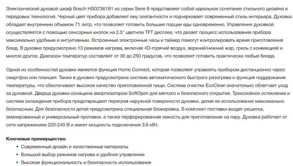 Электрический духовой шкаф Bosch (Бош) HSG7361B1