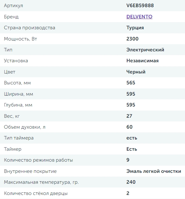 Электрический духовой шкаф Delvento (Делвенто) V6EB59888
