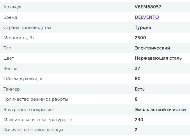 Электрический духовой шкаф Delvento (Делвенто) V6EM68057