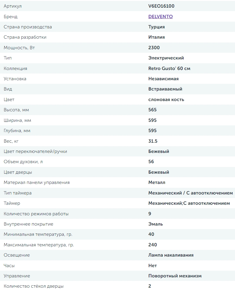 Электрический духовой шкаф Delvento (Делвенто) V6EO16100