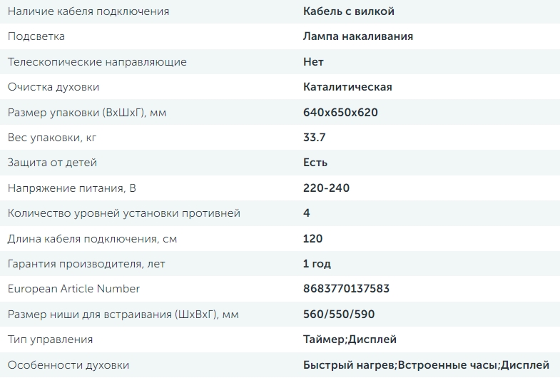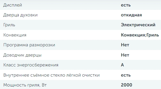 Объём духовки |