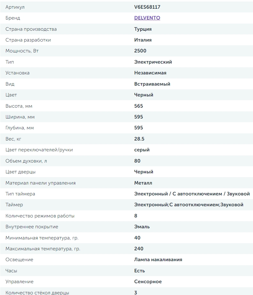 Электрический духовой шкаф Delvento (Делвенто) V6ES68117