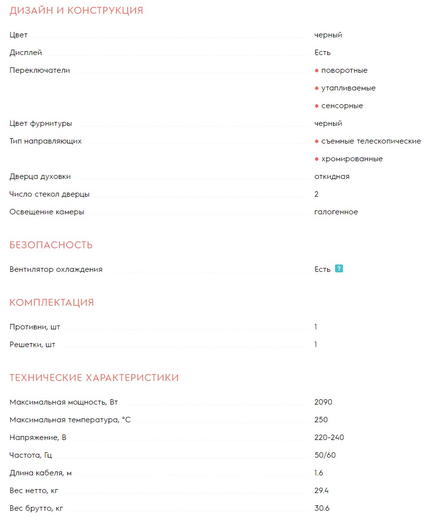 Объём духовки |