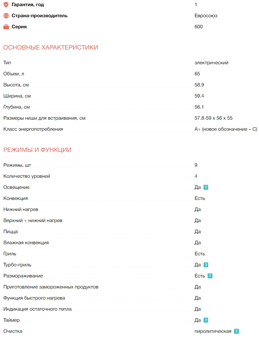 Объём духовки |
