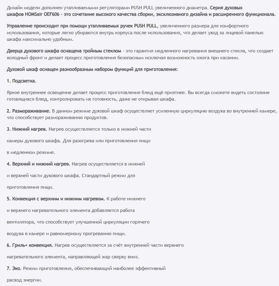 Электрический духовой шкаф HOMSair (ХОМСэйр) OEF606BK