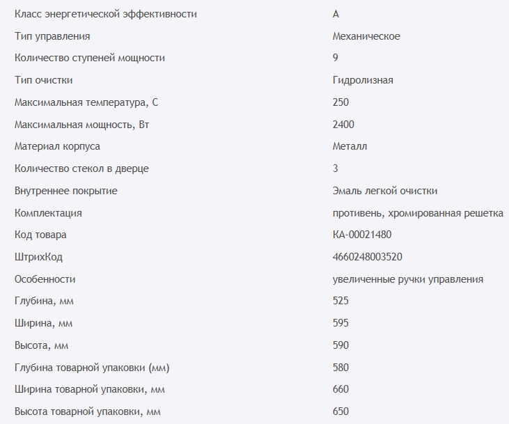 Объём духовки |
