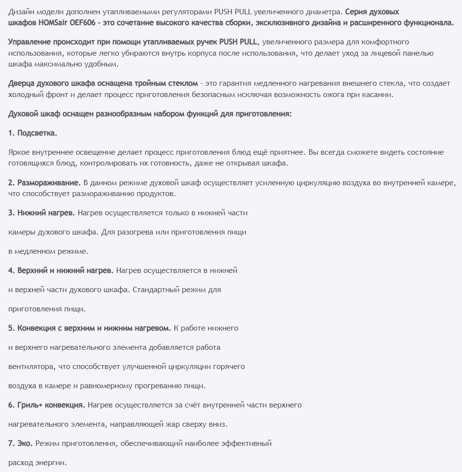 Электрический духовой шкаф HOMSair (ХОМСэйр) OEF606BK2
