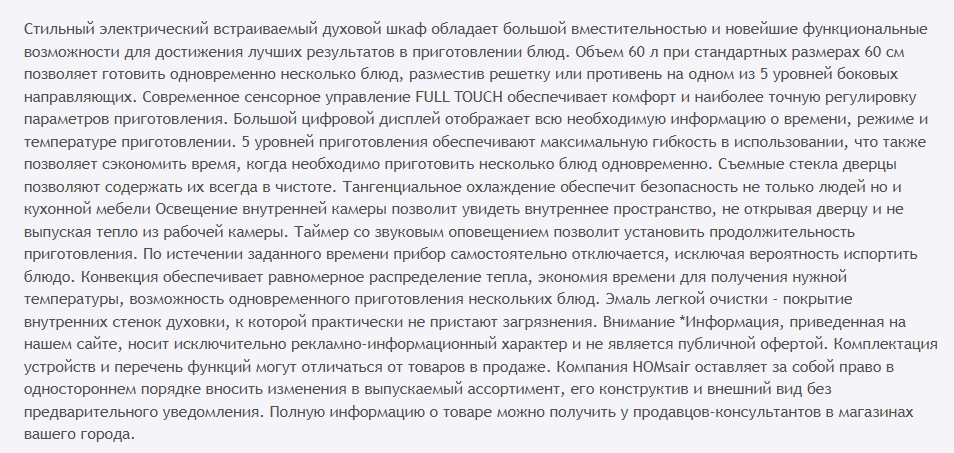 Электрический духовой шкаф HOMSair (ХОМСэйр) OEH6010WH