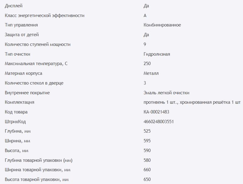 Объём духовки |