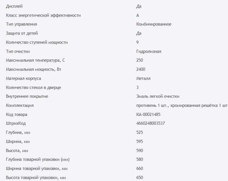 Объём духовки |