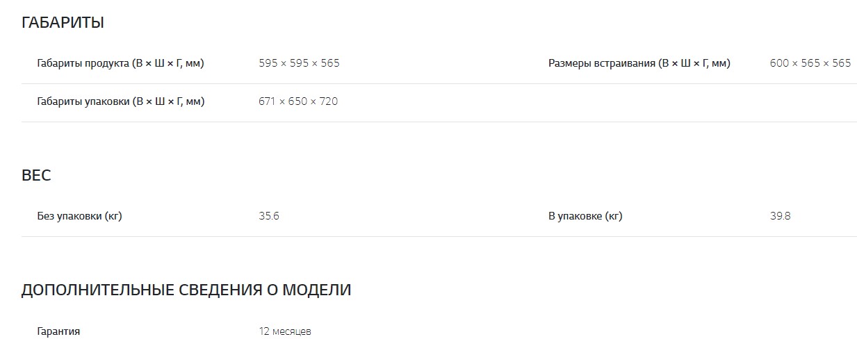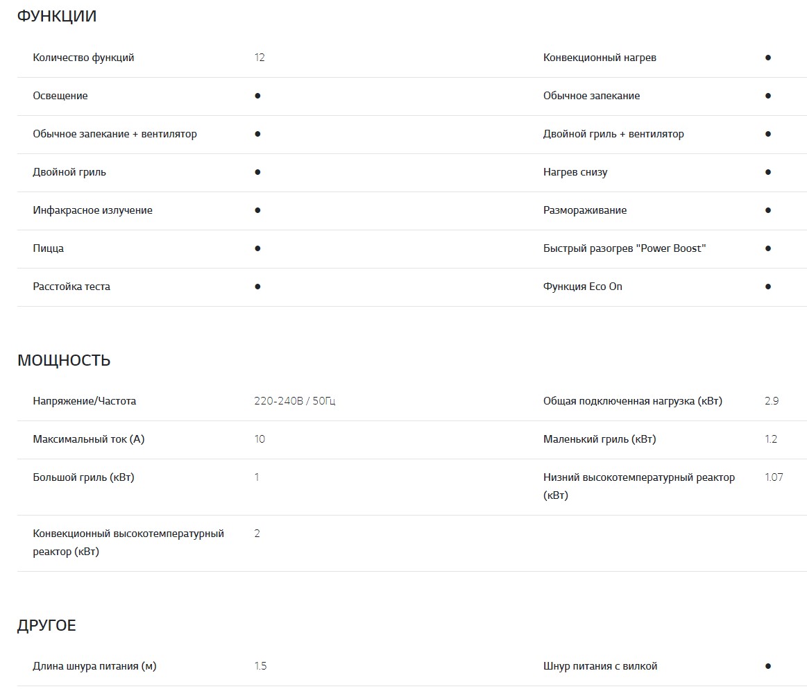 Объём духовки |