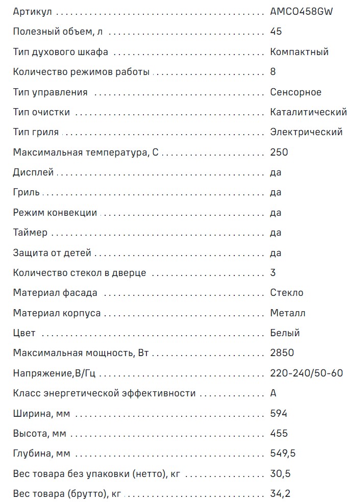 Электрический духовой шкаф MAUNFELD (Маунфилд) AMCO458GW