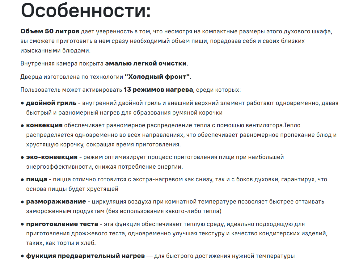 Объём духовки |